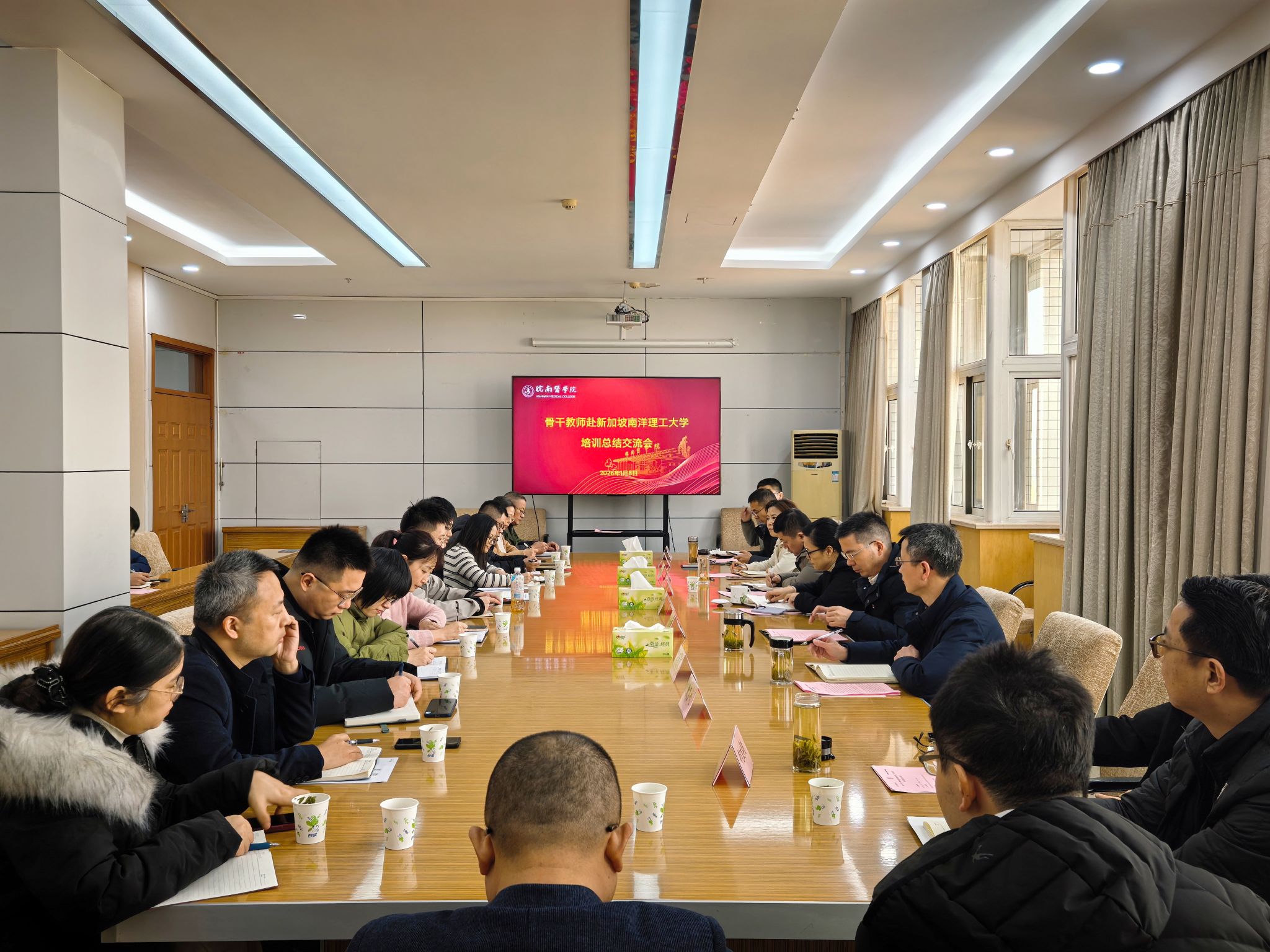 1月8日,学校在滨江校区行政会议室召开2025骨干教师赴新加坡南洋理工大学培训总结交流会。校党委书记夏劲松,党委副书记、院长姚应水,党委常委、副院长韩永升,党委常委、副院长余结根出席会议,相关职能部门负责人及全体参训教师参会。会议由余结根主持。