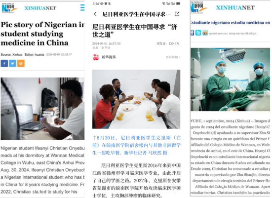国际学生柯林优秀事迹多次受到“新华社”等主流媒体报道
