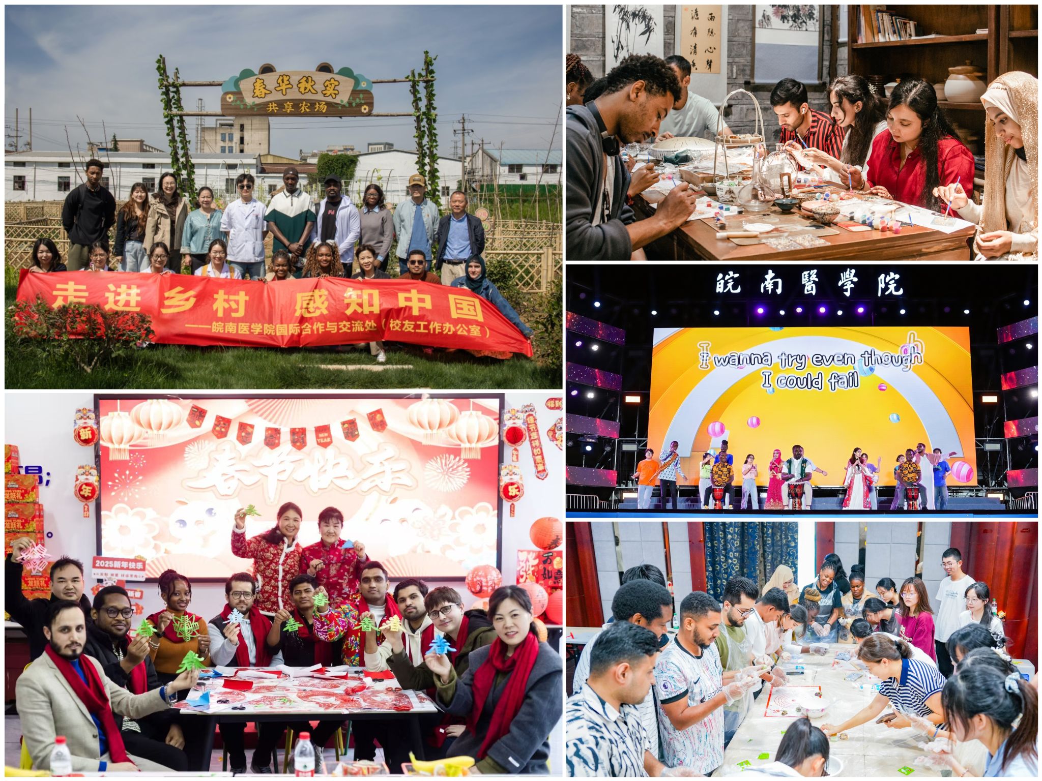 创新文化育人模式,促进跨文化交融。坚持“育人为本、文化浸润”,将中国国情教育与跨文化交流融入培养全过程。结合医学专业特色与芜湖地方文化底蕴,打造“行走的国情教育课堂”;连续多年组织国际学生参加“外国人讲安徽故事”“用英语讲中国故事”等大型活动并屡获佳绩。同时,常态化举办中国传统文化体验、地方民俗体验等活动,让国际学生在沉浸式体验中感知中国魅力,主动讲好中国故事。