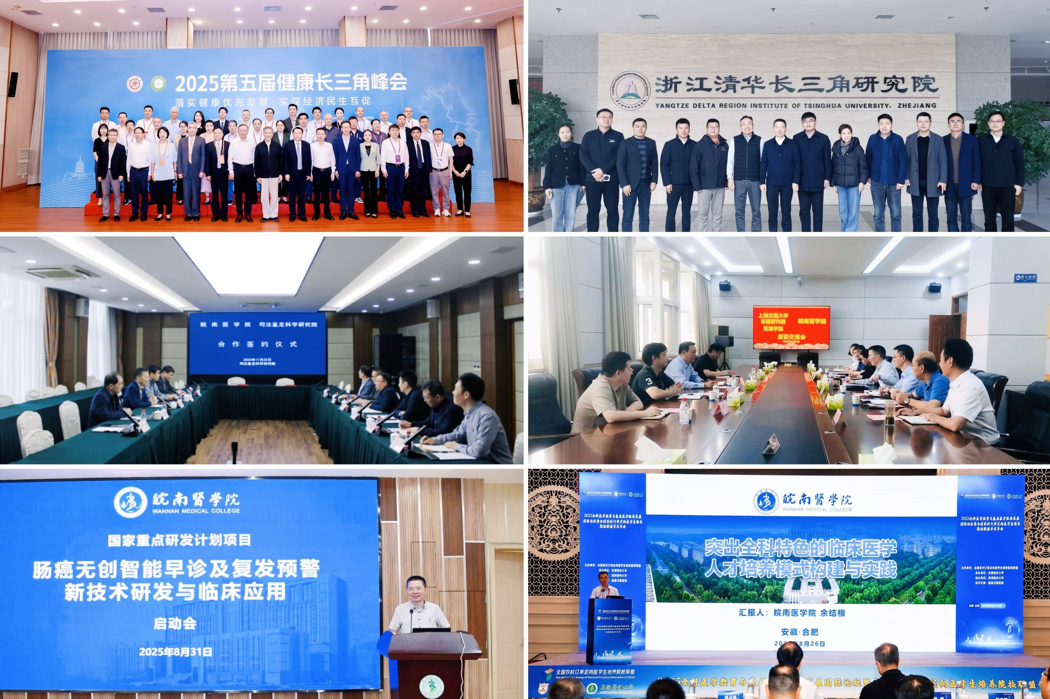 区域协同能级跃升,贡献皖医智慧力量。积极响应长三角一体化发展战略,深度融入长三角医疗健康与教育合作大格局,对外合作领域不断拓宽,在区域协同发展中绽放光彩。加入合肥国家科学中心大健康研究院联合研究中心,与合肥综合性国家科学中心人工智能研究院建立合作关系。与上海交通大学合作,协办第五届“健康长三角峰会”;与复旦大学联合申报并获批国家重点研发计划“生物与信息融合”重点专项,等等。加强医疗卫生协同,第一、第二附属医院与长三角地区医院共建专科10个。