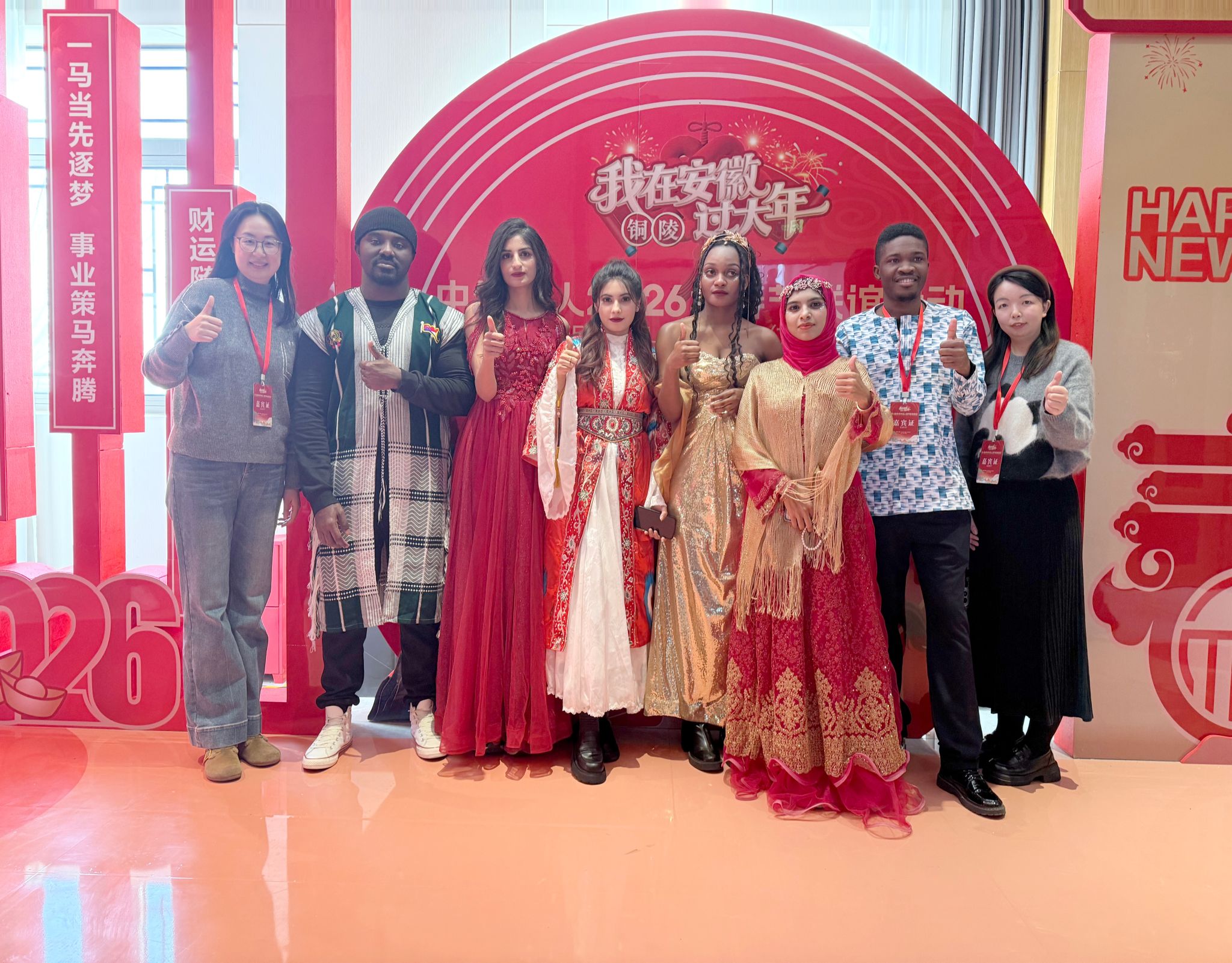 岁序更替,春潮涌动;年味渐浓,情谊绵长。近日,“我在安徽过大年”中外友人2026年春节联谊活动在铜陵市义安区犁桥水镇启幕,我校国际学生受邀参与其中,不仅沉浸式感受了中国春节的传统魅力,更作为省内登台表演的六所高校之一以精彩演出惊艳全场,成为跨文化交流舞台上一道靓丽的风景线。